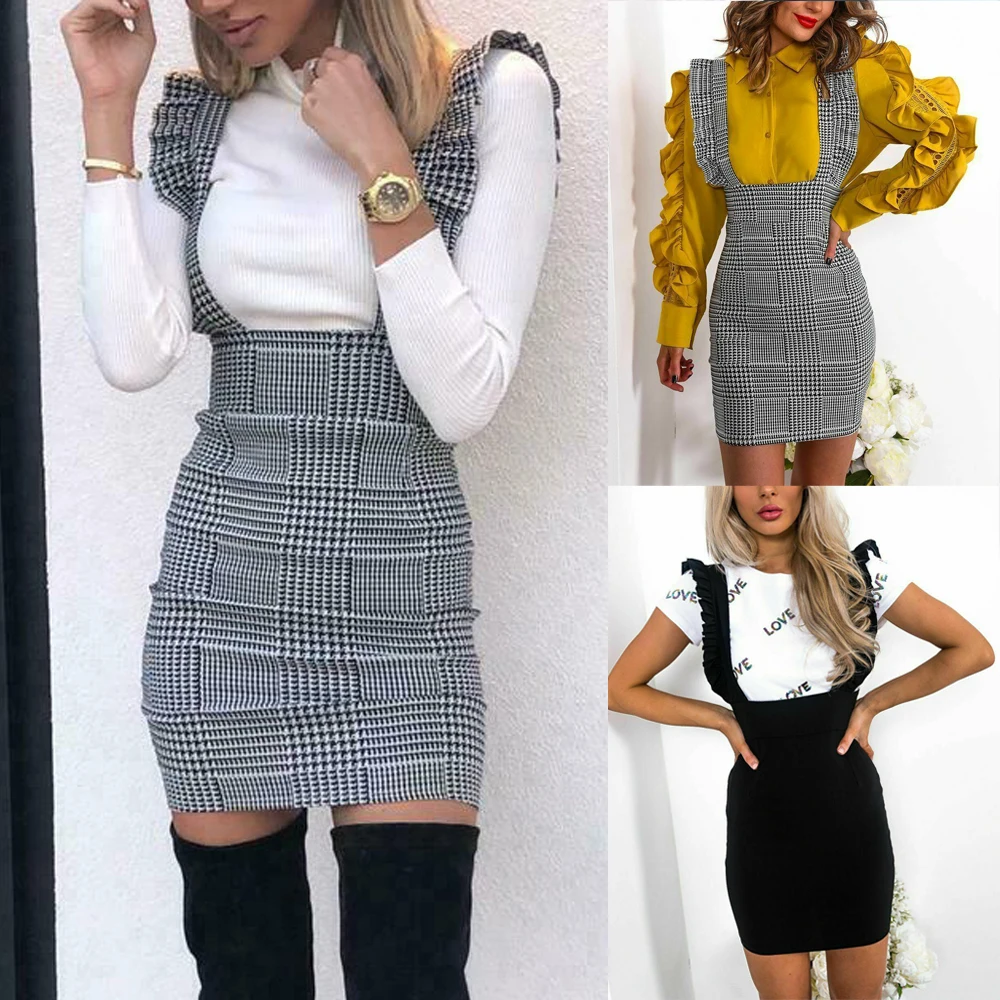 Пикантная Женская юбка в клетку с оборками, облегающая вечерняя кор...