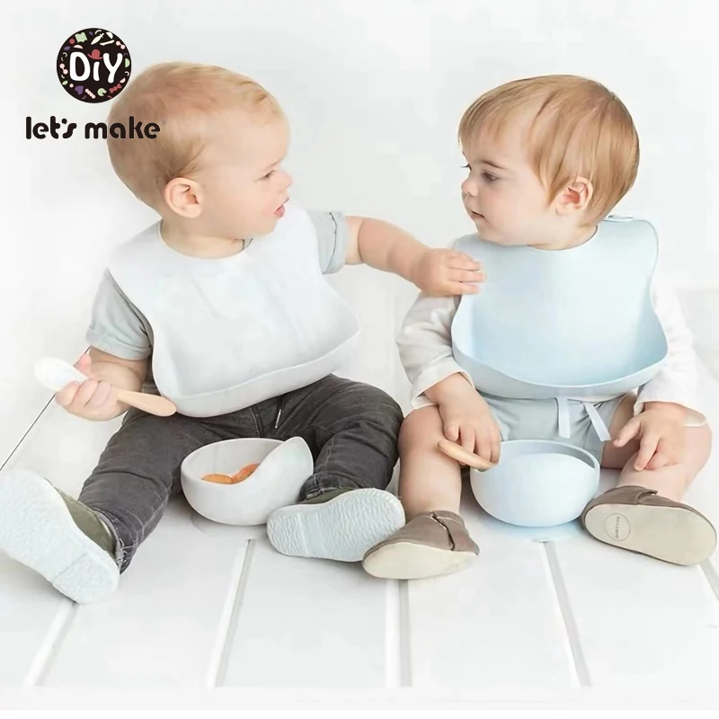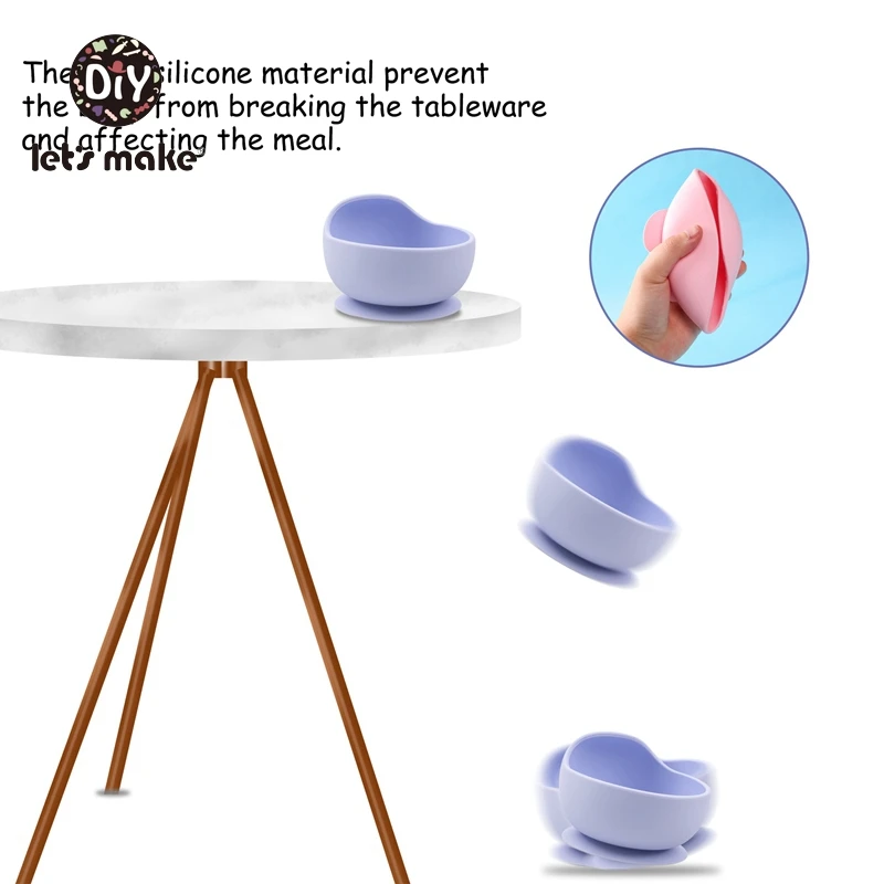 Детская посуда Let's Make, набор силиконовых чашек для кормления ребенка, ложка, Легкая очистка, мягкая розовая тарелка для еды, аксессуары для игр