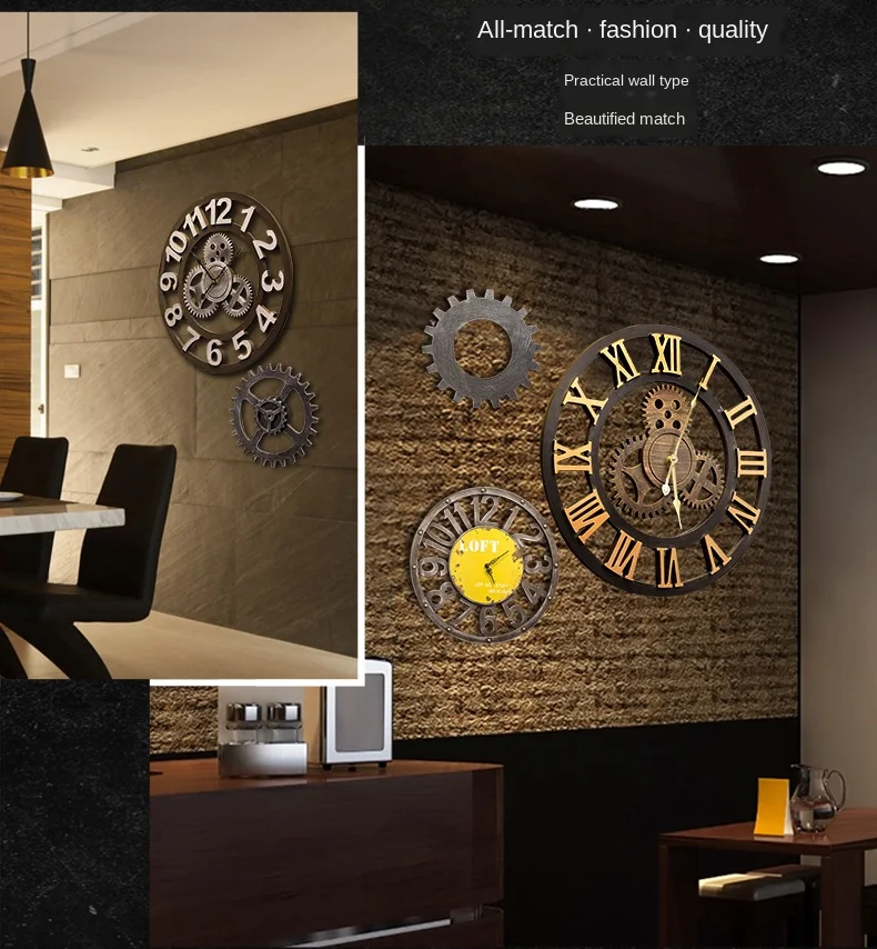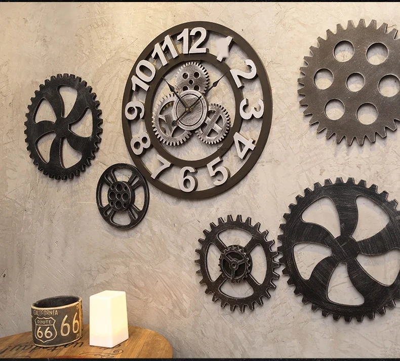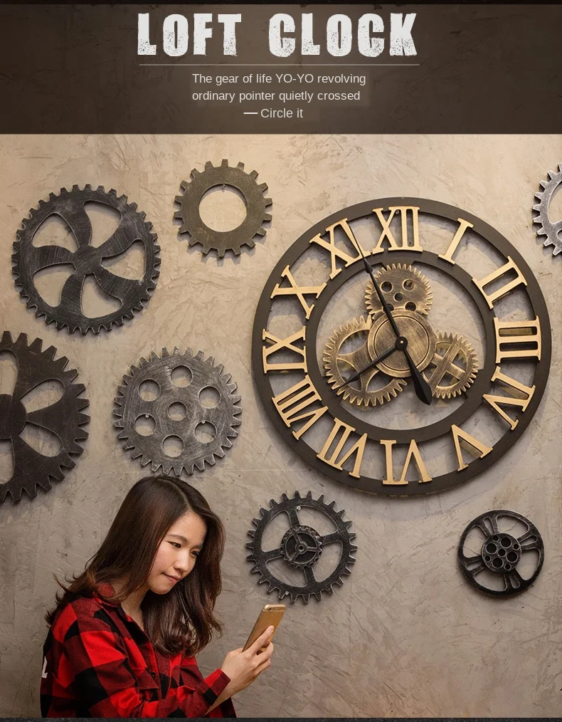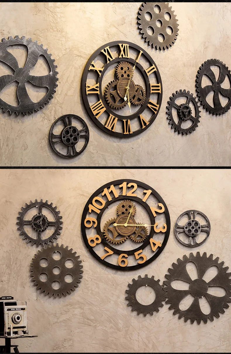 Большие настенные часы винтажные Деревянные 3D промышленные подвесные столы креативные настенные часы декоративное снаряжение часы Muur Klok Декор SC395 Вес:0,7 кг 1 кг