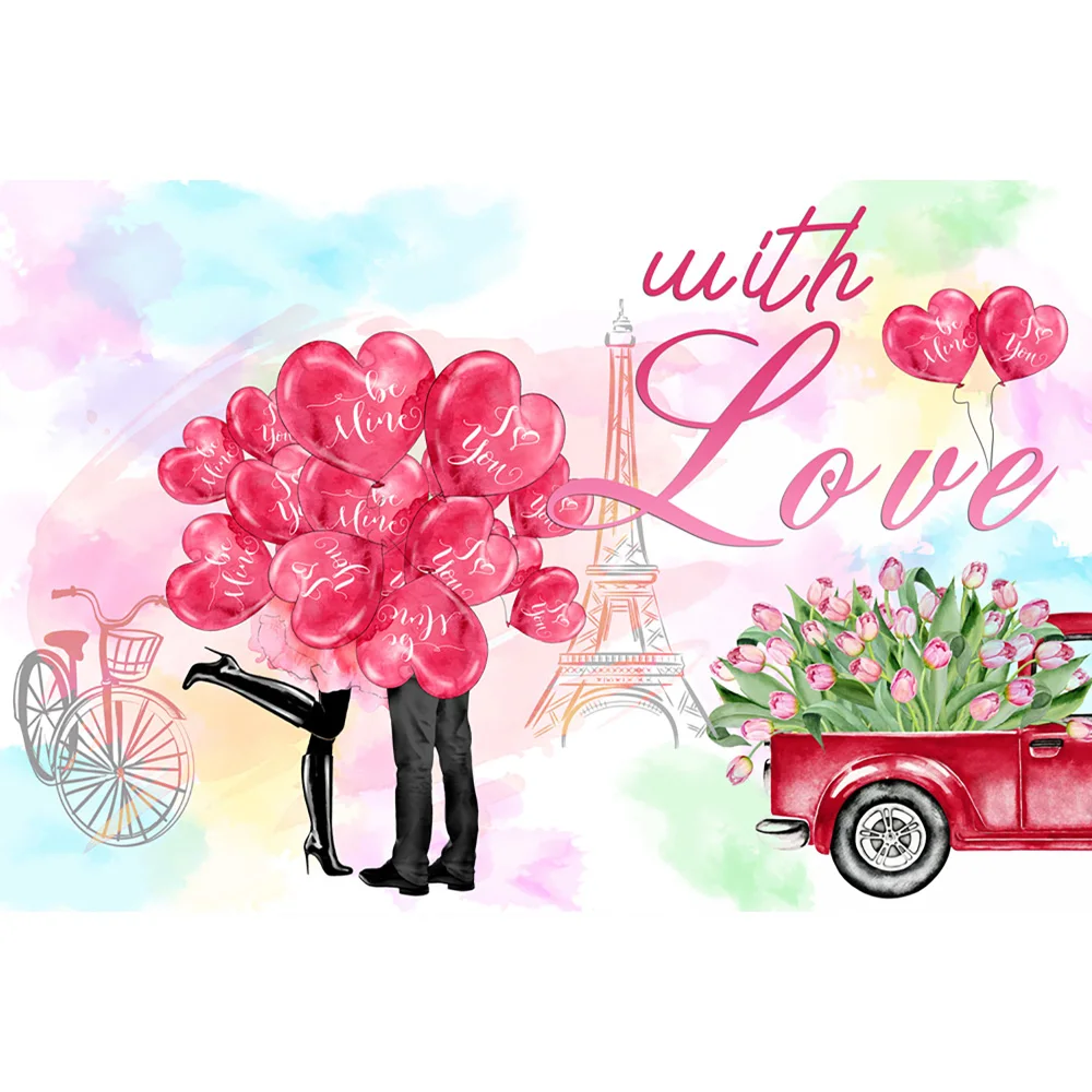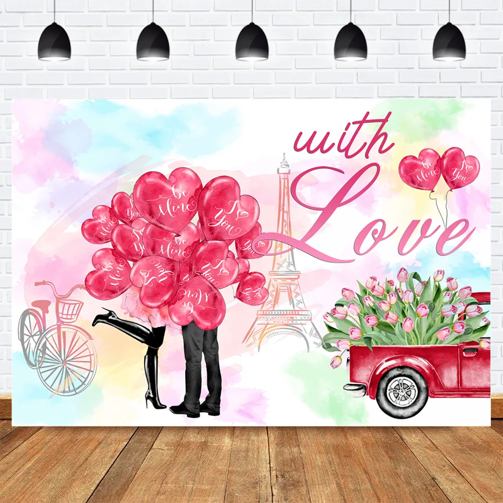 Фотофон на День святого Валентина для фотостудии с любовью романтический свадебный фон Эйфелева башня Любовь Воздушные шары Роза