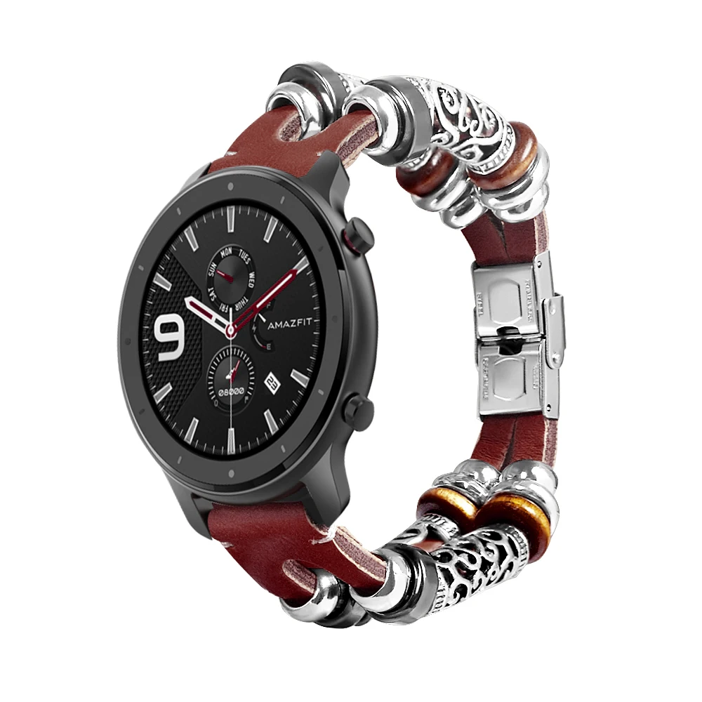 Ремешок для часов Huami Amazfit GTS с бисером в стиле ретро, кожаны...