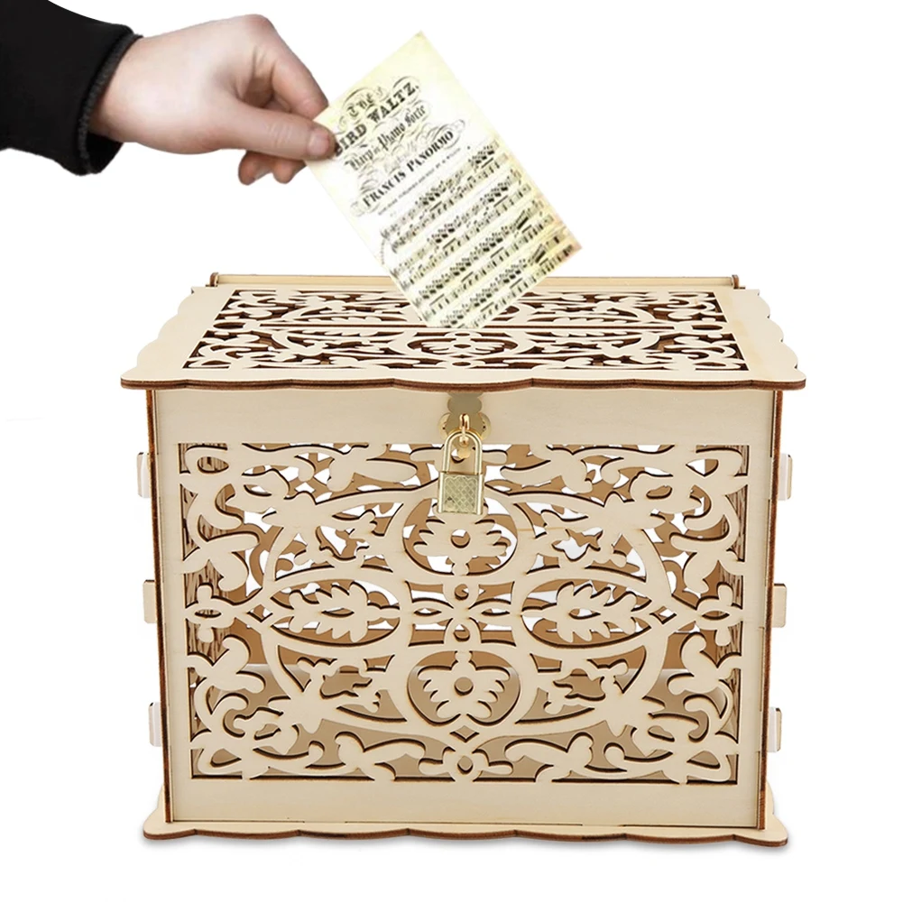 Свадебная подарочная коробка для карт деревянная с замком и ключами DIY Подарочная коробка для денег декоративные принадлежности для дня рождения