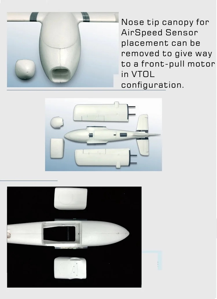 Параметры Эта платформа FPV с размахом крыльев 1600 мм полностью поразила нас в своем девичьем полете. Мы должны сказать, что это лучшая платформа FPV, которую мы каждый пробовали. Во время наших испытаний он прекрасно летал с любой скоростью между 45 ~ 115 км/ч. Иногда мы летали в ручном режиме, но он был настолько стабильным, что некоторые люди думали, что он находится в стабильном режиме. Этот новый самолет имеет 2 различных варианта носа, 2 различных варианта живота (для посадки живота/шасси) все идет в стандартном розничном комплекте. Размах крыльев: 1600 мм Моторы: 2814x2 или 2216x2 (две моторы) или 2820x1 (передняя-Натяжная установка) Аккумулятор: 6S 8000 ~ 12000 мАч Опора: 8x6 ~ 10x6 (макс. 12 дюймов) Вес (RTF, без батарей): 1300 г