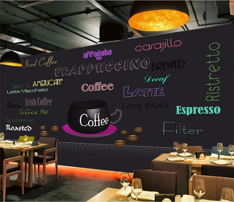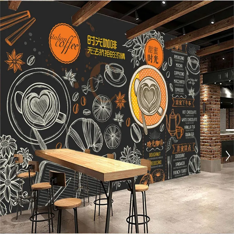 Ручная роспись кофейная тема черный фон настенная бумага 3D Кофейня Повседневный кафе снэк-бар промышленный Декор настенная бумага 3D Пожалуйста, обратите внимание на материалы при размещении заказа, в противном случае он будет отправлен случайным образом. Если вы хотите изменить текст изображения и т. д., пожалуйста, свяжитесь со службой поддержки клиентов.