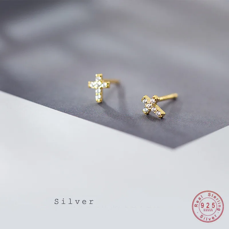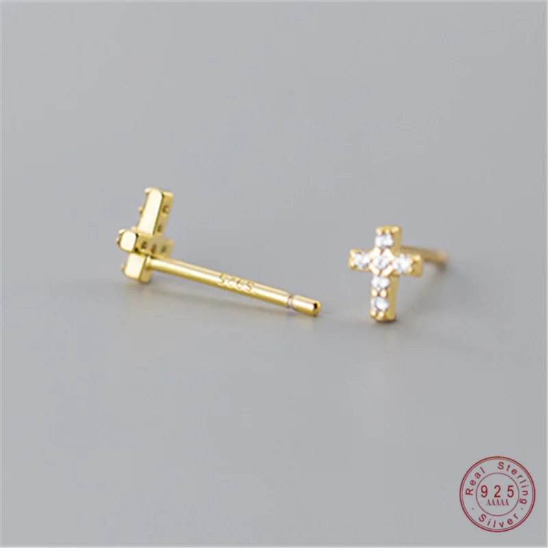 Женские серьги-гвоздики WANTME из настоящего серебра 100% пробы с крестом, инкрустированные кристаллами циркония в стиле панк, ювелирные изделия, оптовая продажа