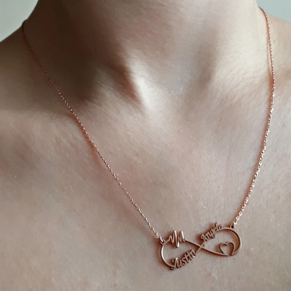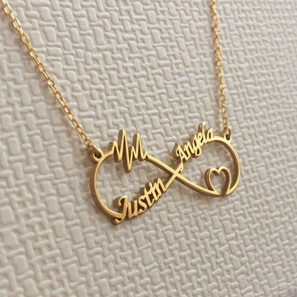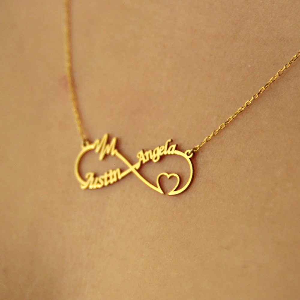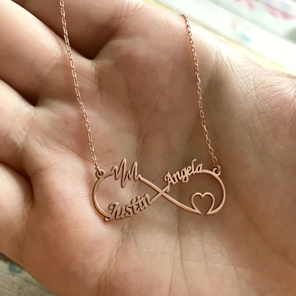 Сердце с бесконечностью двойной кулон-табличка с именем ожерелье s для женщин нержавеющая сталь Розовое золото персонализированное Имя Ожерелье Ювелирные изделия Подарки