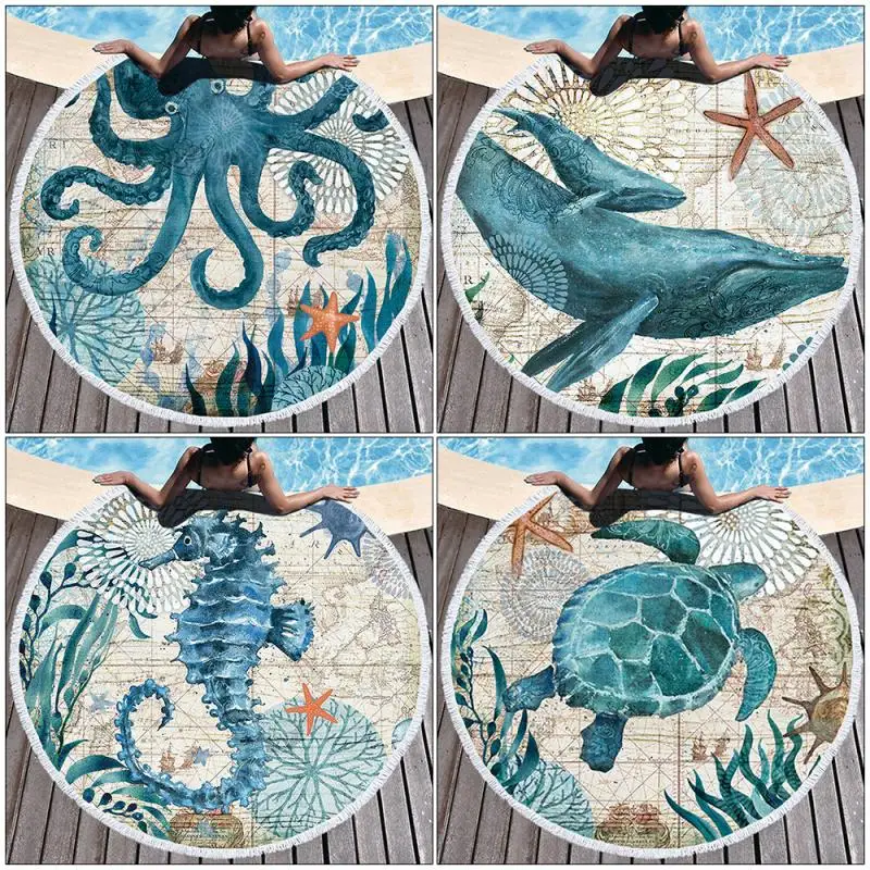 Пляжное полотенце s Deep sea life, пляжное полотенце из микрофибры, круглое тканевое банное полотенце s для отдыха на открытом воздухе, море, пляж, кемпинг, банное полотенце # SD
