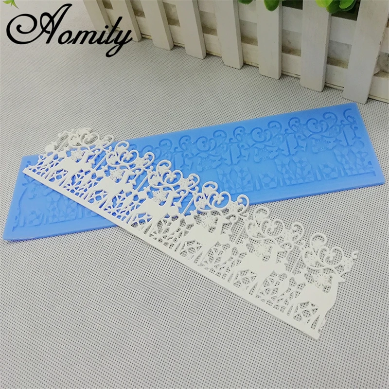 Силиконовая форма Aomily в виде снежинок, лосей, для свадебного торта, рождественской вечеринки, кружева, помадки, мусса, сахарного ремесла, коврик для глазирования, инструменты для выпечки кондитерских изделий