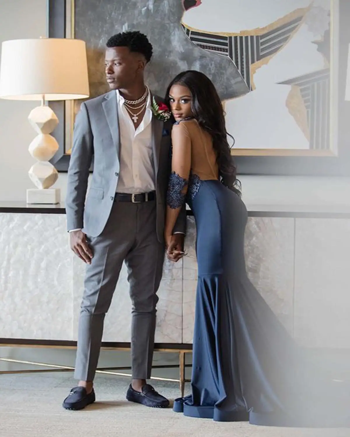 Женское вечернее платье-русалка, темно-синее длинное платье для выпускного вечера с аппликацией и длинными рукавами, 2020