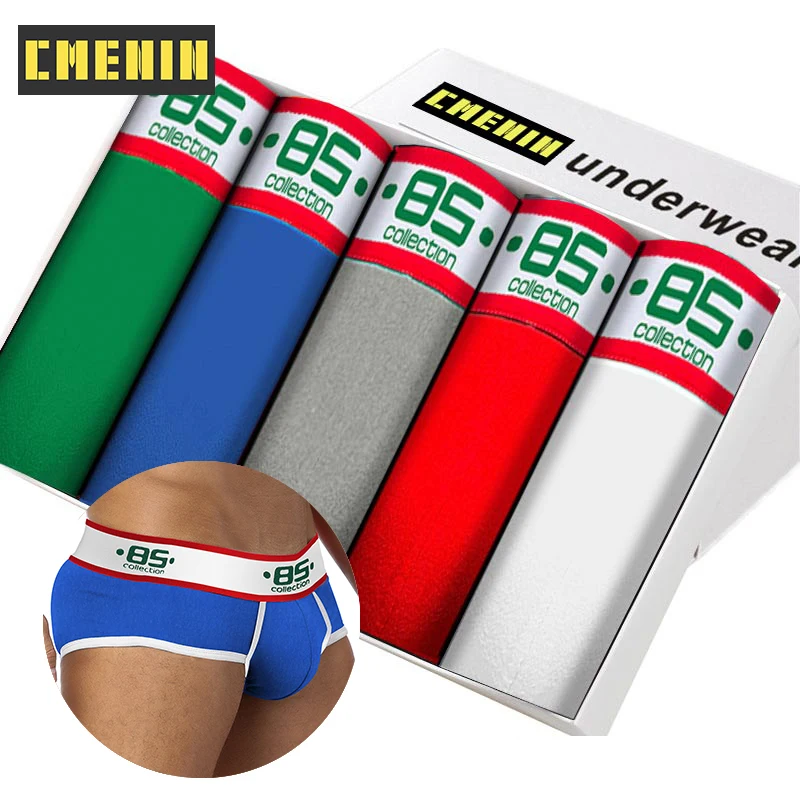 Трусы-брифы мужские однотонные, хлопковое пикантное нижнее белье, бандаж, Трусы-брифы, бикини для гомосексуалистов, 5 шт.лот