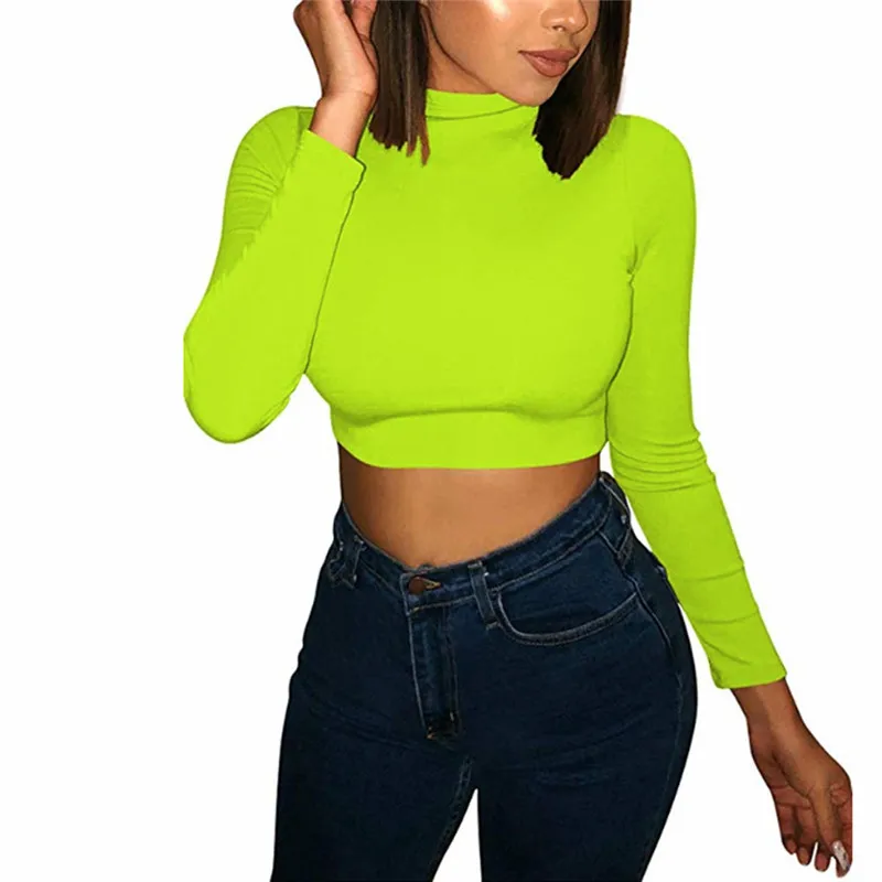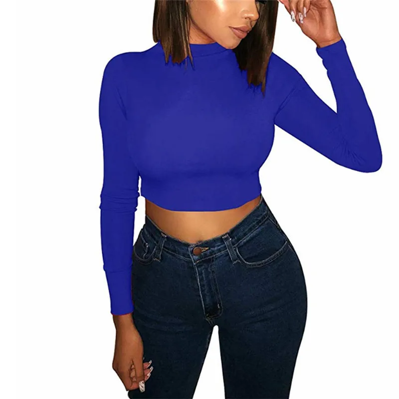 Женская облегающая футболка с высоким воротом, однотонный кроп-Топ ...