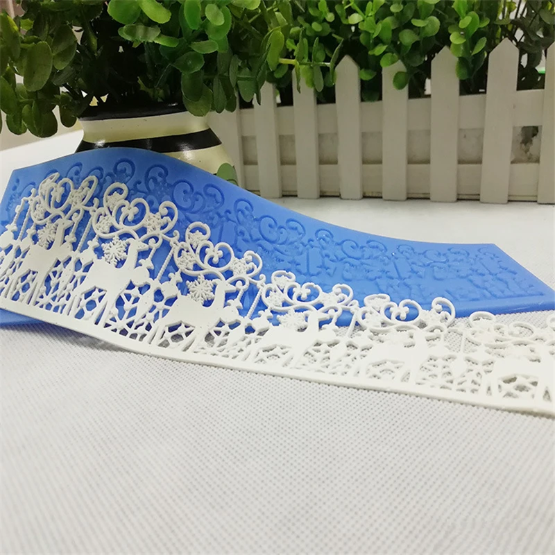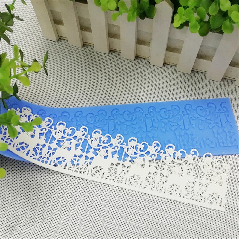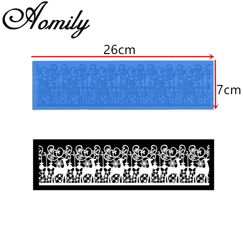 Силиконовая кружевная форма Aomily 26*7 см, снежинка, лось, для свадебного торта, рождественской вечеринки, помадки, мусса, сахара, глазури, коврик, инструмент для выпечки