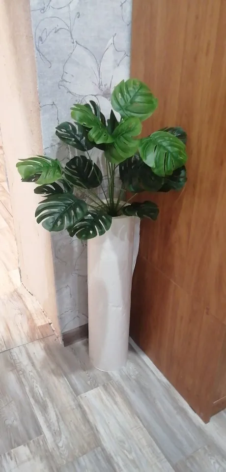Приехал с помятыми листьями, расправили отпаривателем. Выглядит реалистично.