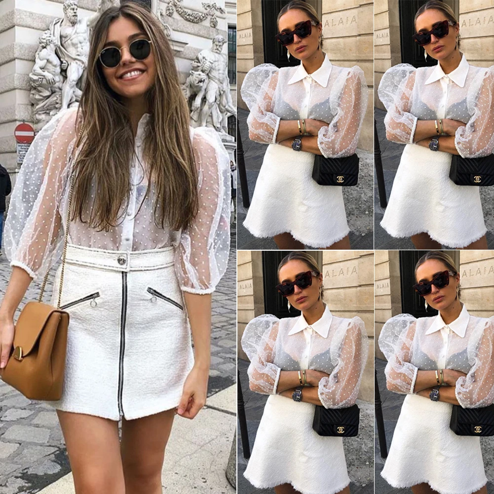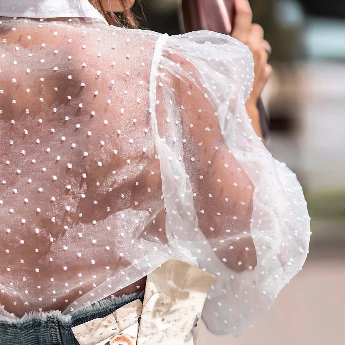 Женская прозрачная блузка в горошек, летняя прозрачная блузка с пыш...