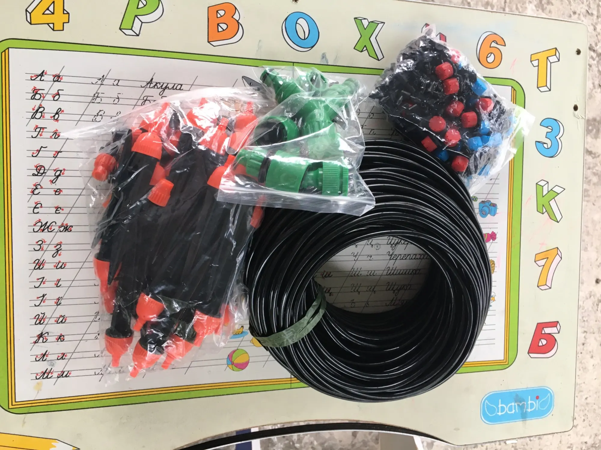 Посылку получили целую, описание соответствует, качество пластика хорошее. Минус в том, что когда установил 11 оросителей, вода подавалась в первые 5 и то по убыванию. До последних вода не доходила вообще. Давление хорошее. Пришлось оставить только центральный клапан и разбить на две ветки, так хоть как-то поливает.