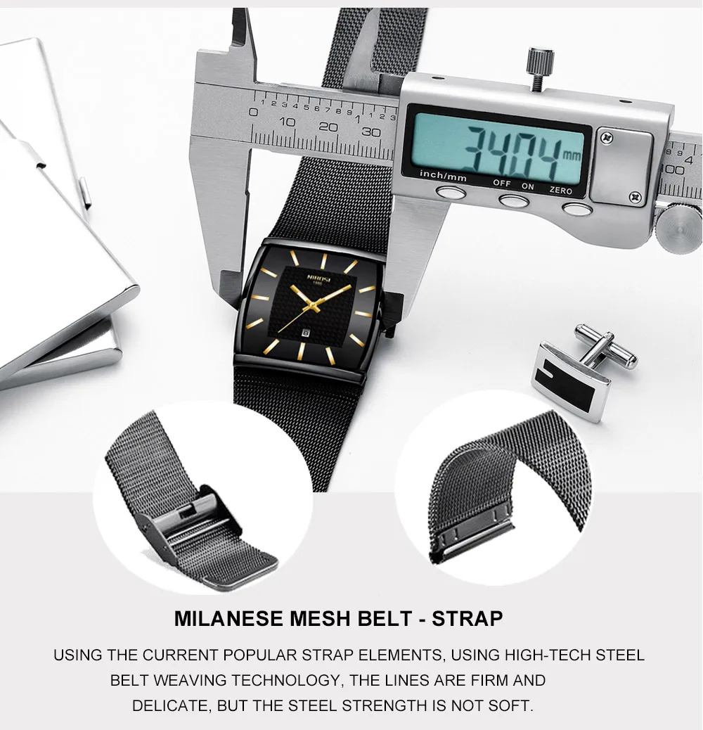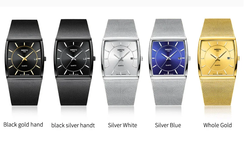 NIBOSI 2021 квадратные часы мужские черные золотистые синие сетчаты...