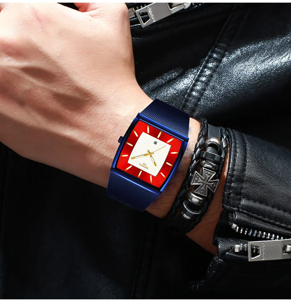 Часы NIBOSI мужские, квадратные, синие, красные, деловые, водонепро...