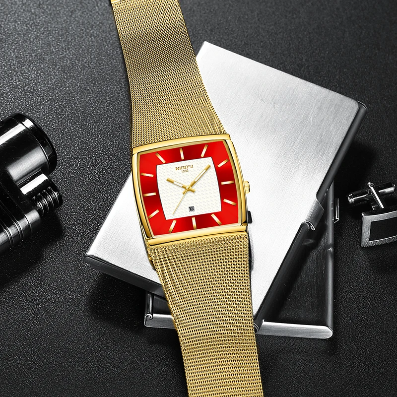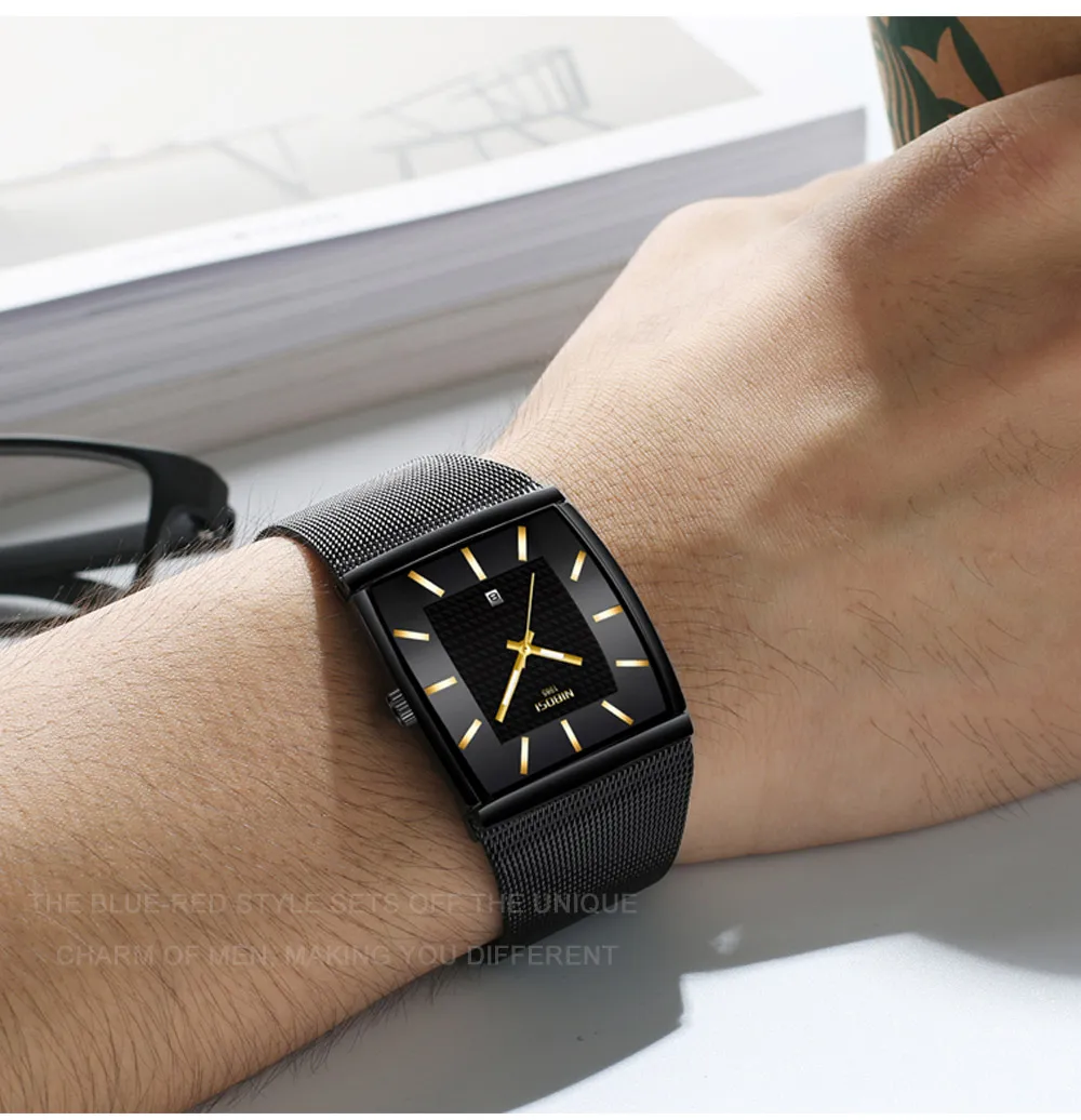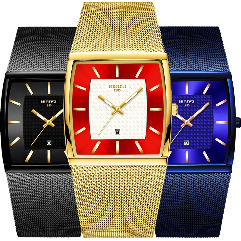 2021 мужские часы NIBOSI квадратного дизайна, Роскошные ультратонки...