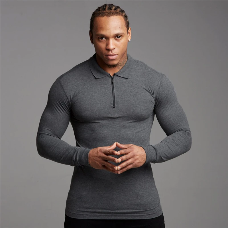 Брендовая дышащая Модная рубашка поло на молнии для спортзала Мужск...