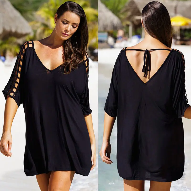 Женский купальник с v-образным вырезом Hirigin, черный пляжный купальник большого размера