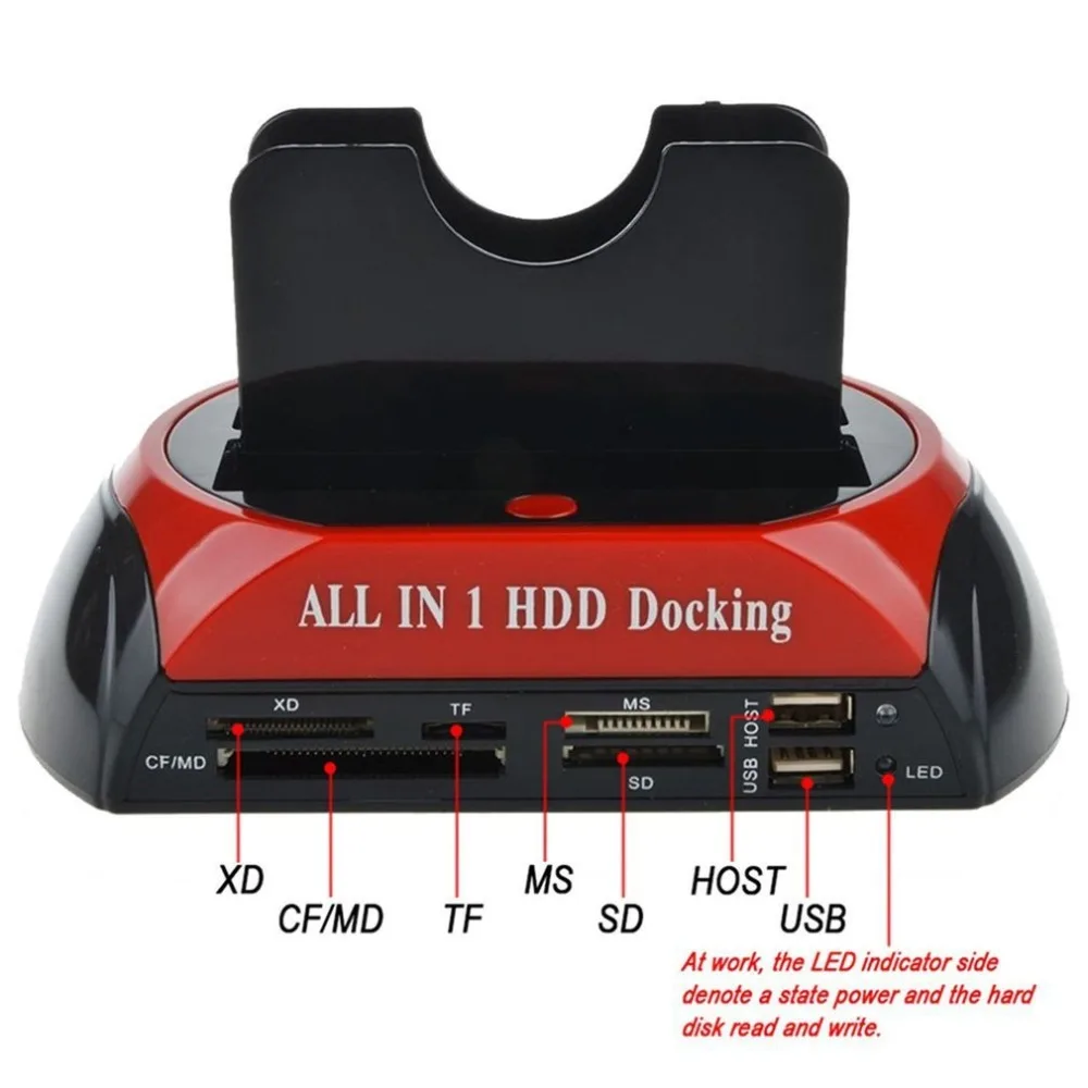 Многофункциональная док-станция для HDD Dual USB 2,0 2,53,5 дюймов IDE SATA Внешний HDD корпус жесткого диска кардридер