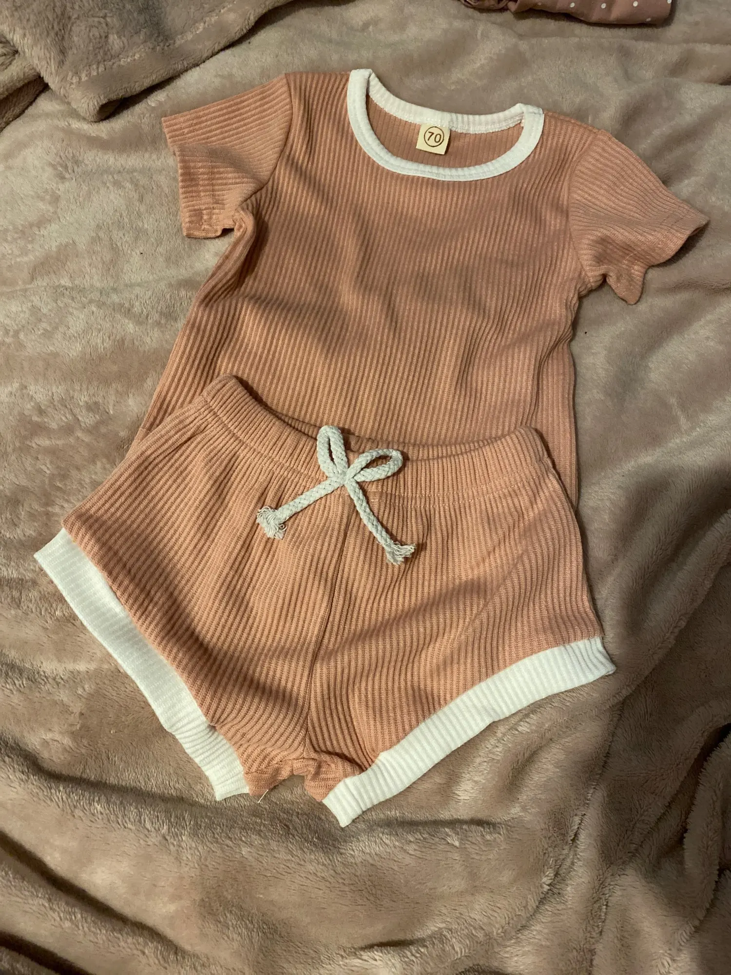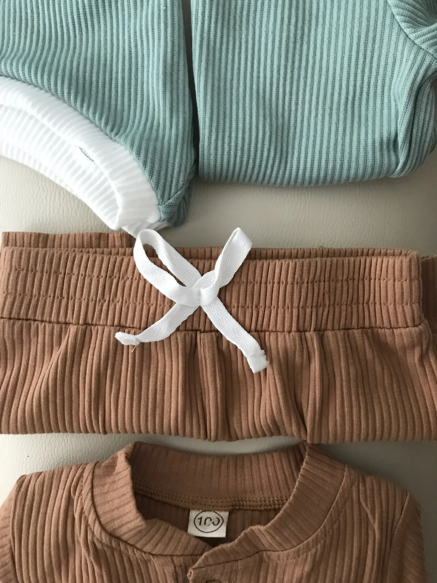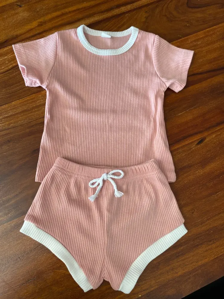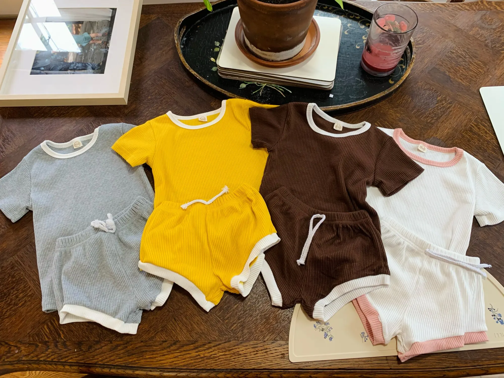 Детская летняя одежда, одежда для маленьких девочек и мальчиков, топы с короткими рукавами, футболка + шорты, штаны, однотонные ребристые наряды, 2020, От 0 до 3 лет