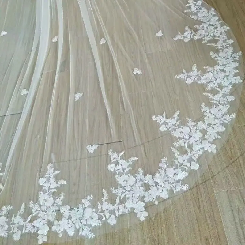 БелаяСлоновая свадебная вуаль 3 м длинная расческа кружевная Мантилья для невесты