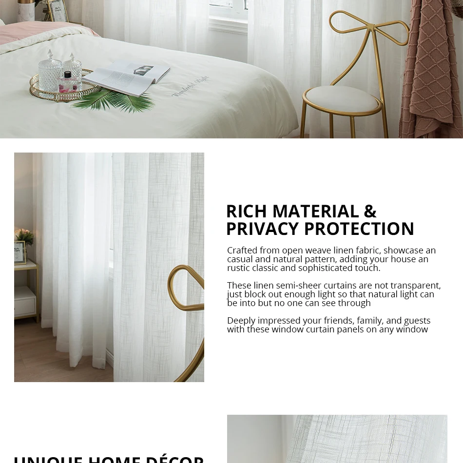 Coqueena™Занавески из вуали-это светильник, воздушный, прозрачный и красивый материал, изготовленный из 100% высококачественного полиэстера. Когда вы повесите на них, шторы дадут хорошее количество солнца и дадут легкий ветерок проскользнуть. Они обогатят стили украшения вашего дома или офиса, а ваш дом будет выглядеть аккуратным и аккуратным все время. Они могут украсить вашу жизнь или рабочее пространство, позволяя естественный светильник пропустить до конца. Свежие и гладкие, эти шторы легко добавят элемент изысканности, когда вы их повесите.