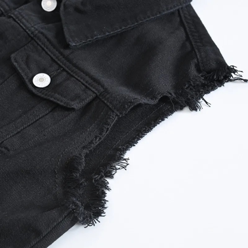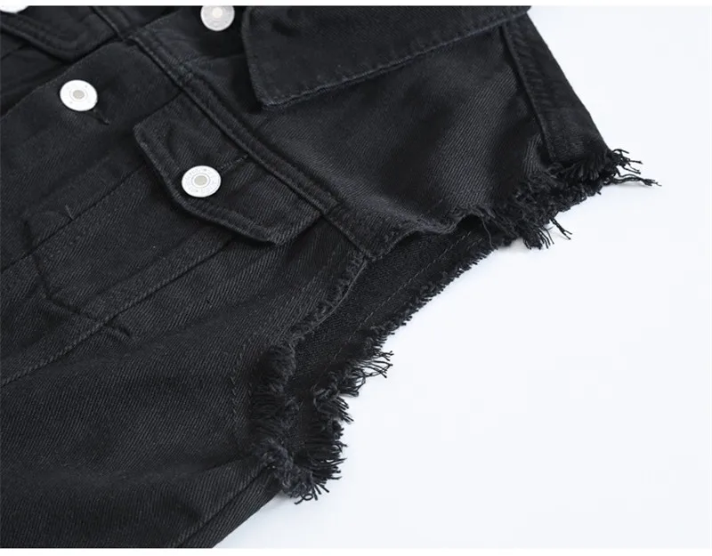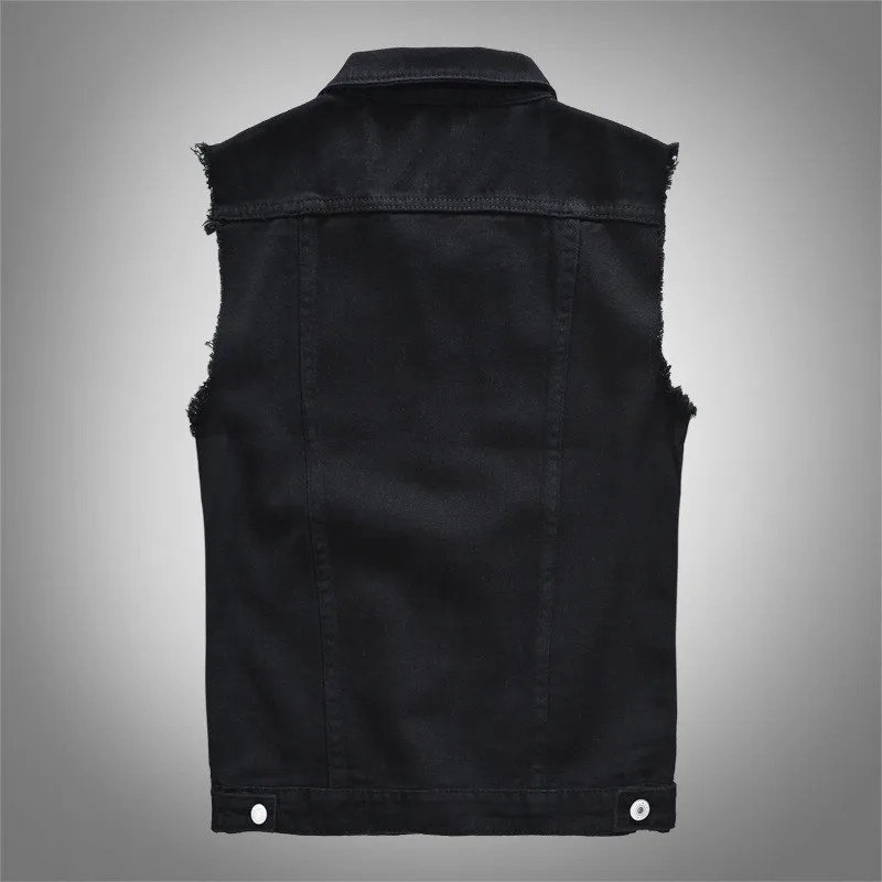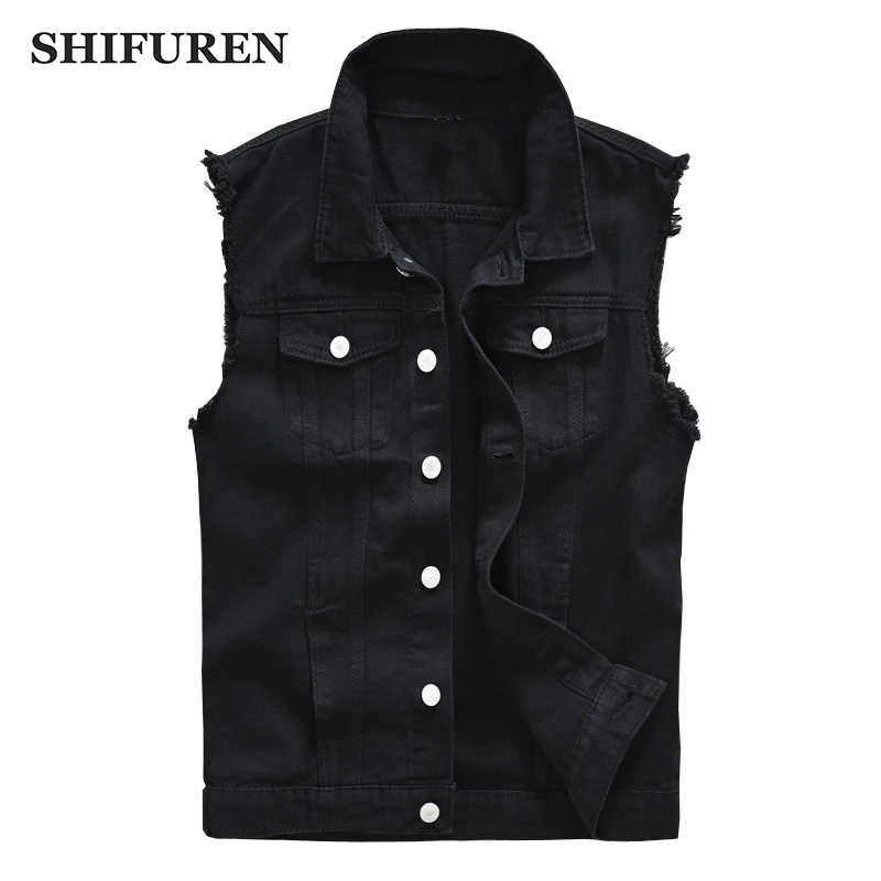 Жилет SHIFUREN мужской из денима, хлопковая рваная безрукавка, однобортный жилет из денима в стиле хип-хоп, моющийся ковбой, Черная