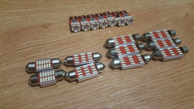 Подсветка работает нормально. Только 6 штук 41 мм не подходят на мой Alfa 159. Я хотел бы иметь 2 больше 36 мм штук вместо багажника.