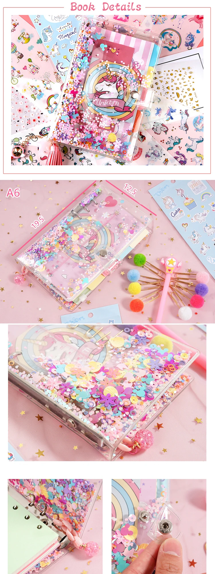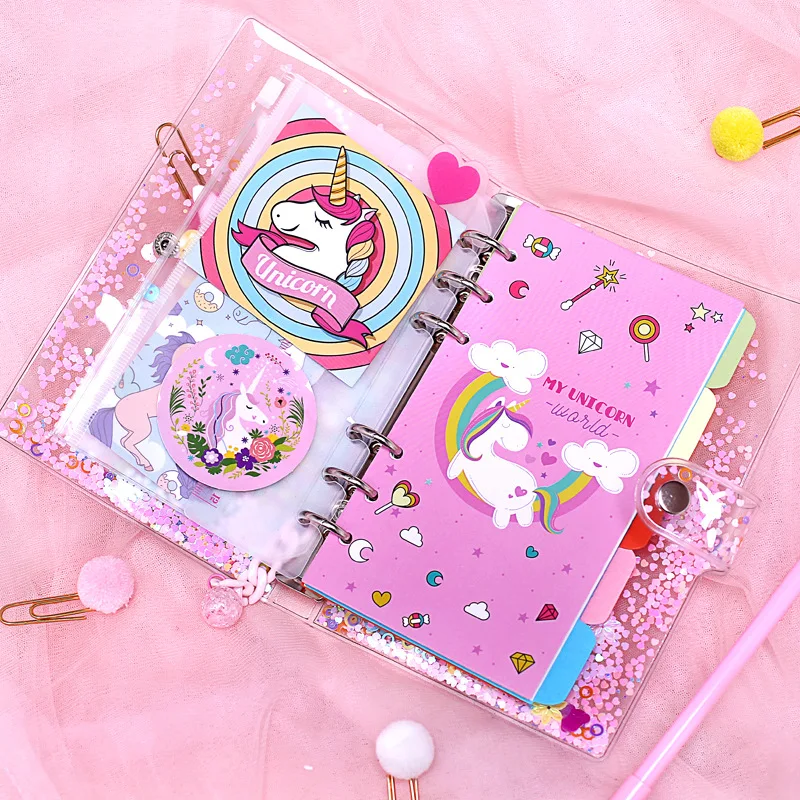 Обложка для блокнота A5, A6, с блестками, с единорогом, с отрывными листами, ПВХ, прозрачная, спиральная, с блестками, связующий дневник, набор папок, для самостоятельной сборки, для офиса