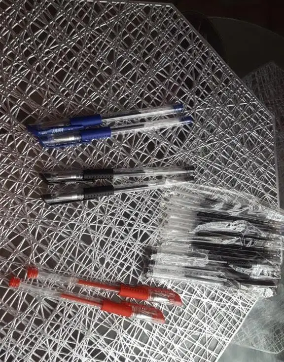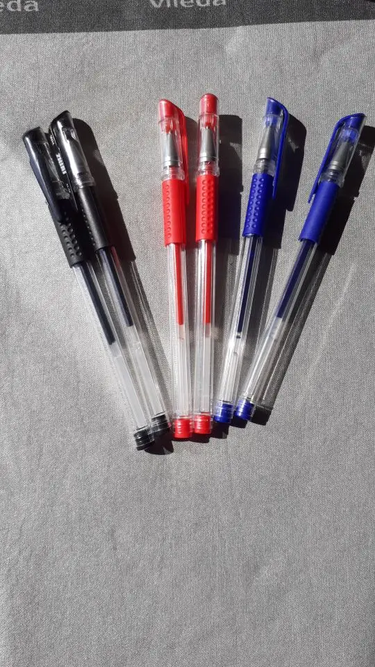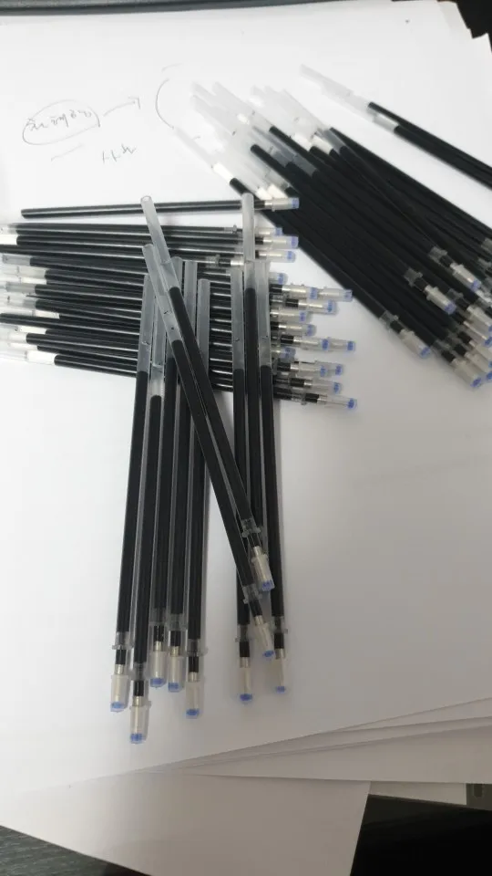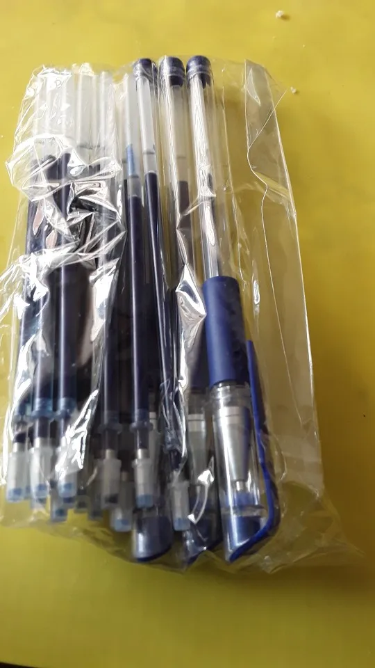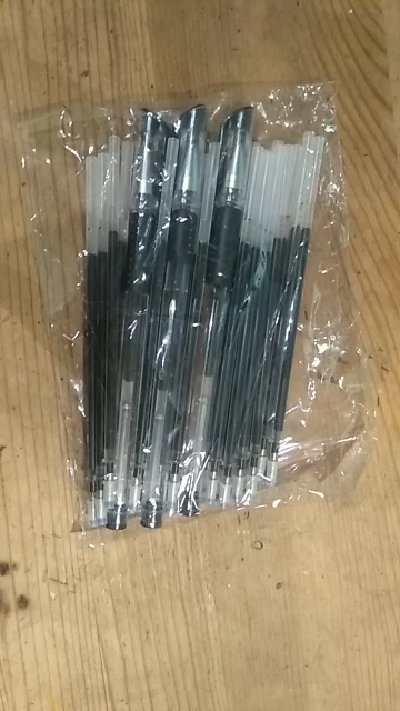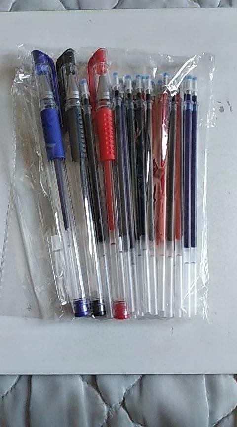 ручки хорошие. гелевые.пишут тонко. держатель на ручке плассмасовый.