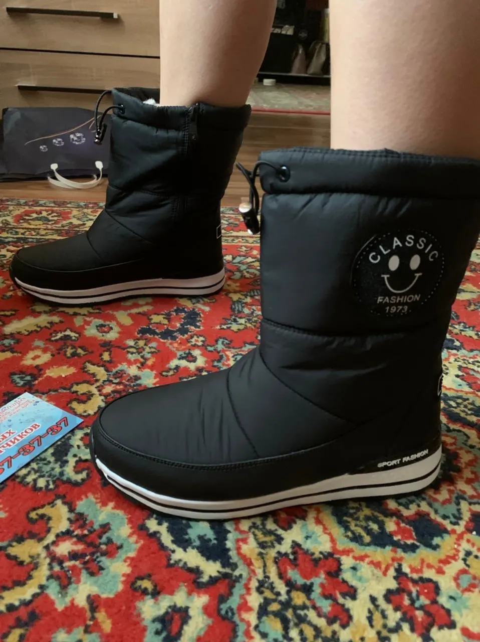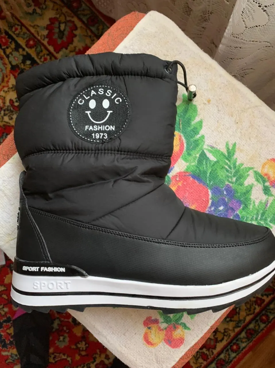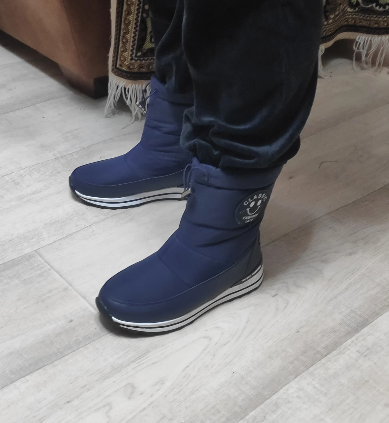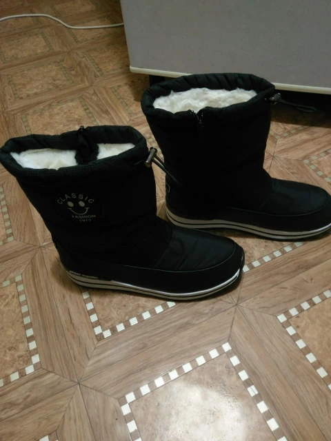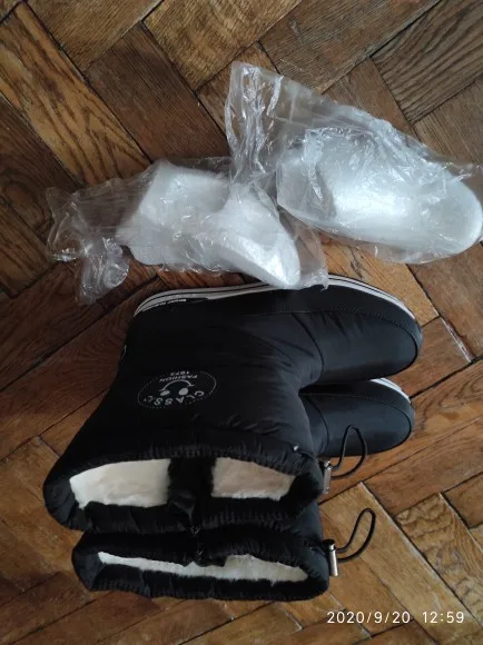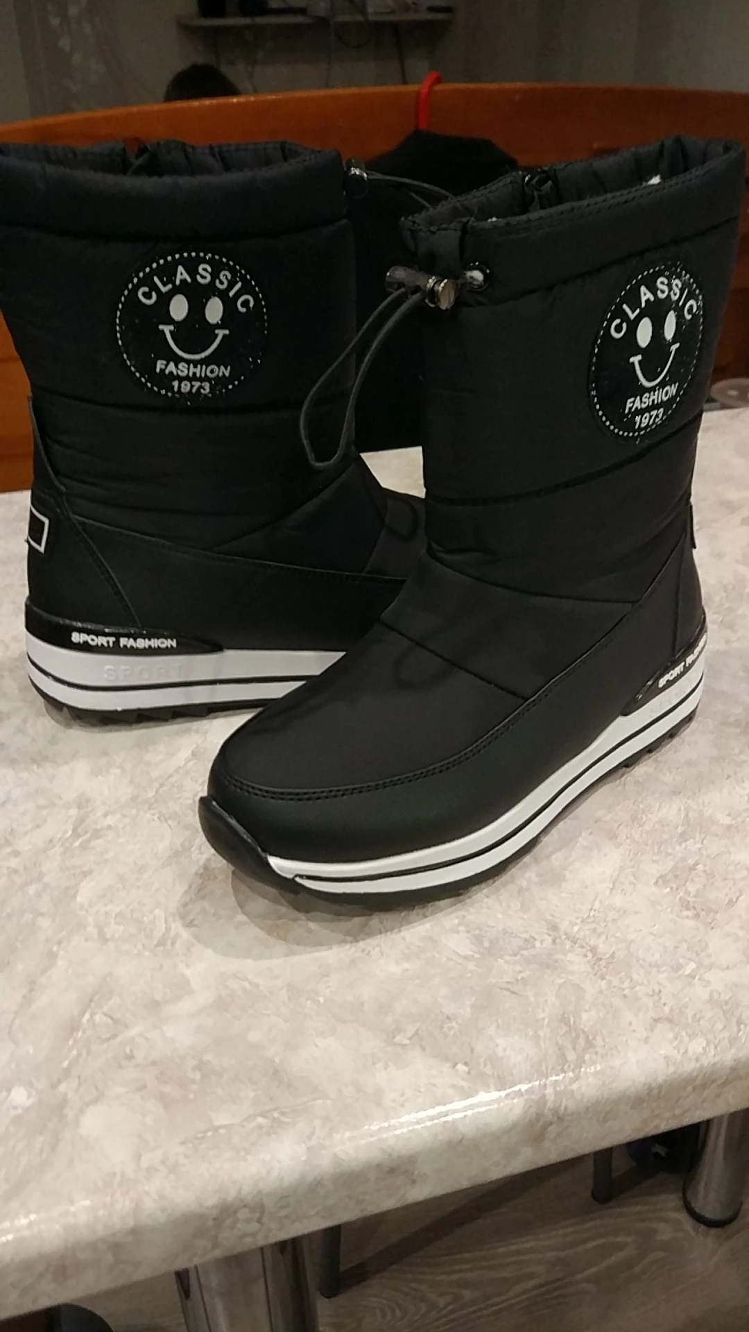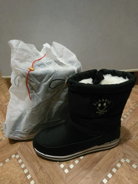 Сапожки очень хорошие.Качество за такую цену хорошее. Подошва немного тоньше ,чем на фото но при -7 ноги не мёрзнут. На 37-37,5 подошли отлично. Есть еще место для теплой стельки или носка . Хорошо пойдут на полную широкую ногу. Лёгкие, теплые,не скользят. По высоте приблизительно как высокие ботинки. Если нога не очень широкая,то можно надевать не расстегивая молнию. Сапожки пришли на неделю позже срока,указанного продавцом. Были упакованы без коробки,но упаковка целая, сапоги не деформировались, через 3 дня не было ни запаха ни заломов. С продавцом не общалась .
