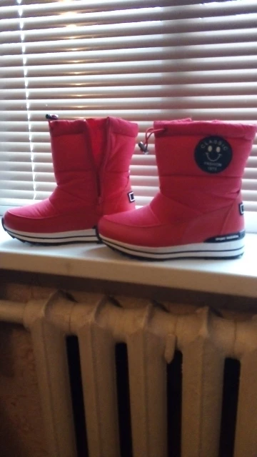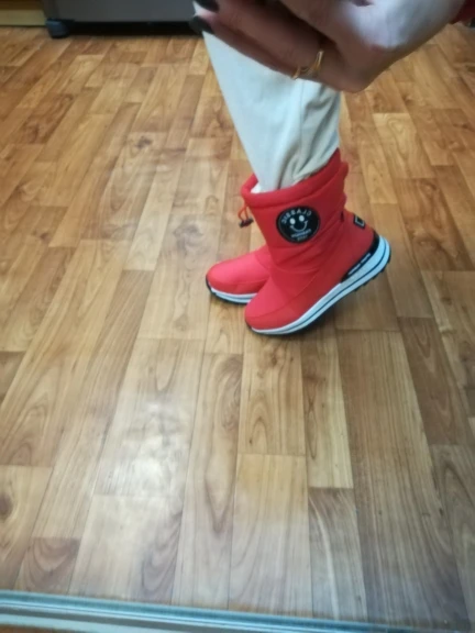 Сапожки супер, тепленькие, мягонькие, не скользкие, а главное такие же яркие как на картинке,,,,на мой размер 24.5 заказала 25.0 подошли с теплым носочком в самый раз,,,, спасибо продавцу, что указал правильно размеры и прямо во время до снегопада успели прийти,,,,, всем рекомендую,,,,,