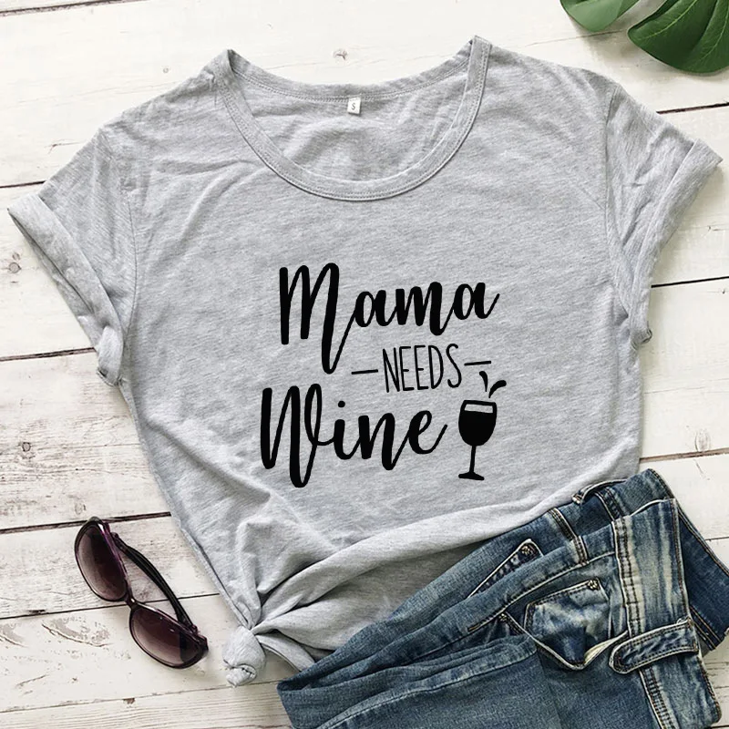 Футболка женская с коротким рукавом и круглым вырезом, модная Свободная рубашка с надписью вина Mama need, топ, одежда на лето