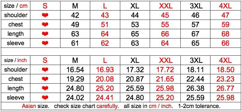 Пожалуйста, проверьте таблицу размеров и измерьте вашу куртку, как показано ниже.