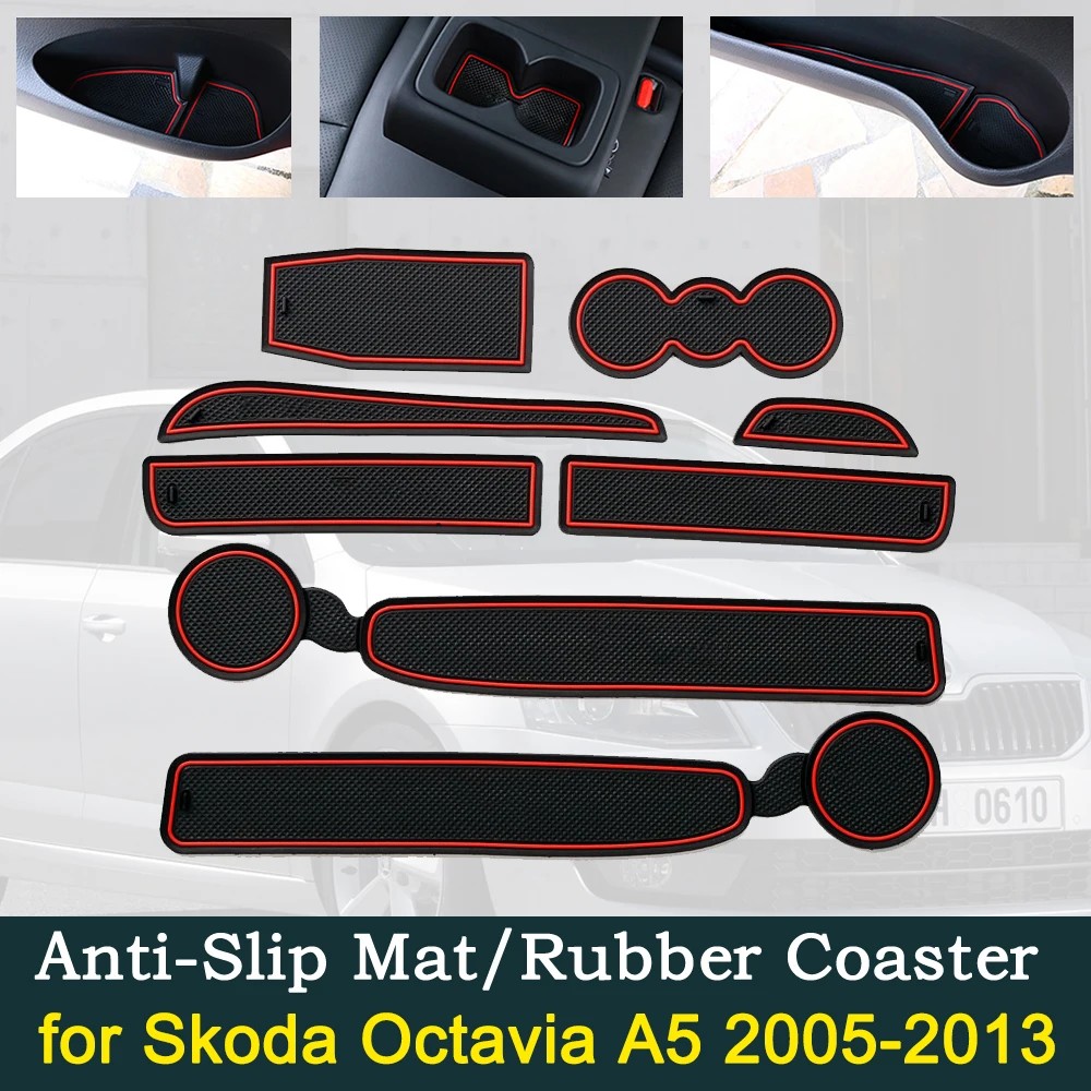 Anti-slip Door Cup Cushion Mat Groove Mats for Skoda Octavia A5