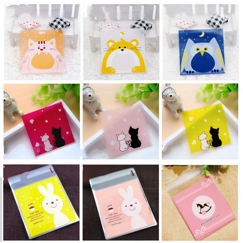 Самоклеящийся пластиковый пакет с милыми мультяшными животными, меш...