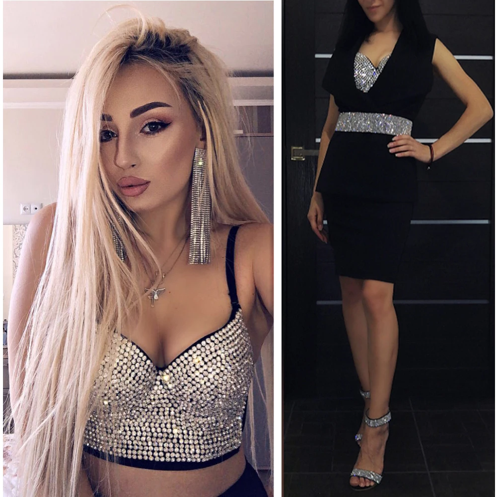 She'sModa роскошный бисер с перьями бюстье пуш-ап ночной клуб Brale...