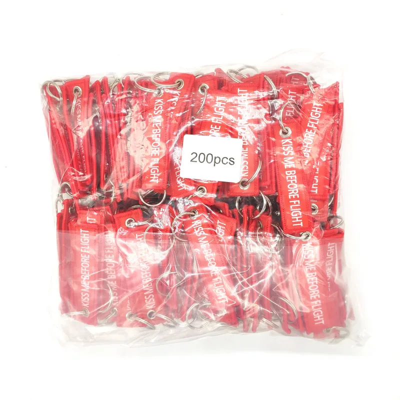 200 шт.лот, Тканое кольцо для ключей Mini Kiss Me Before Flight, специальная бирка для багажа, красная цепочка, брелок для авиационных подарков