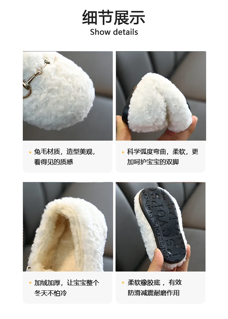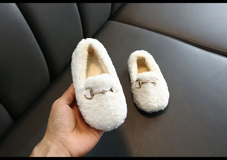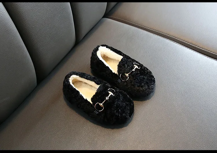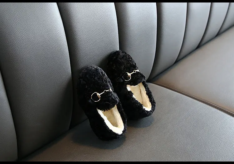 Новая модная детская зимняя обувь для девочек, туфли в стиле Принцесса из замши из материала на основе хлопка; Плюшевые Теплые маленьких обувь с узором в горошек; Детские носки