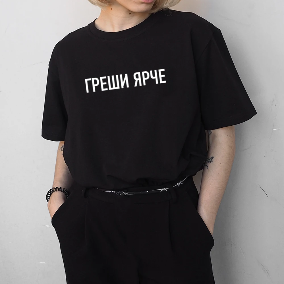 Футболка женская летняя с надписью на русском языке, в стиле Харадзюку