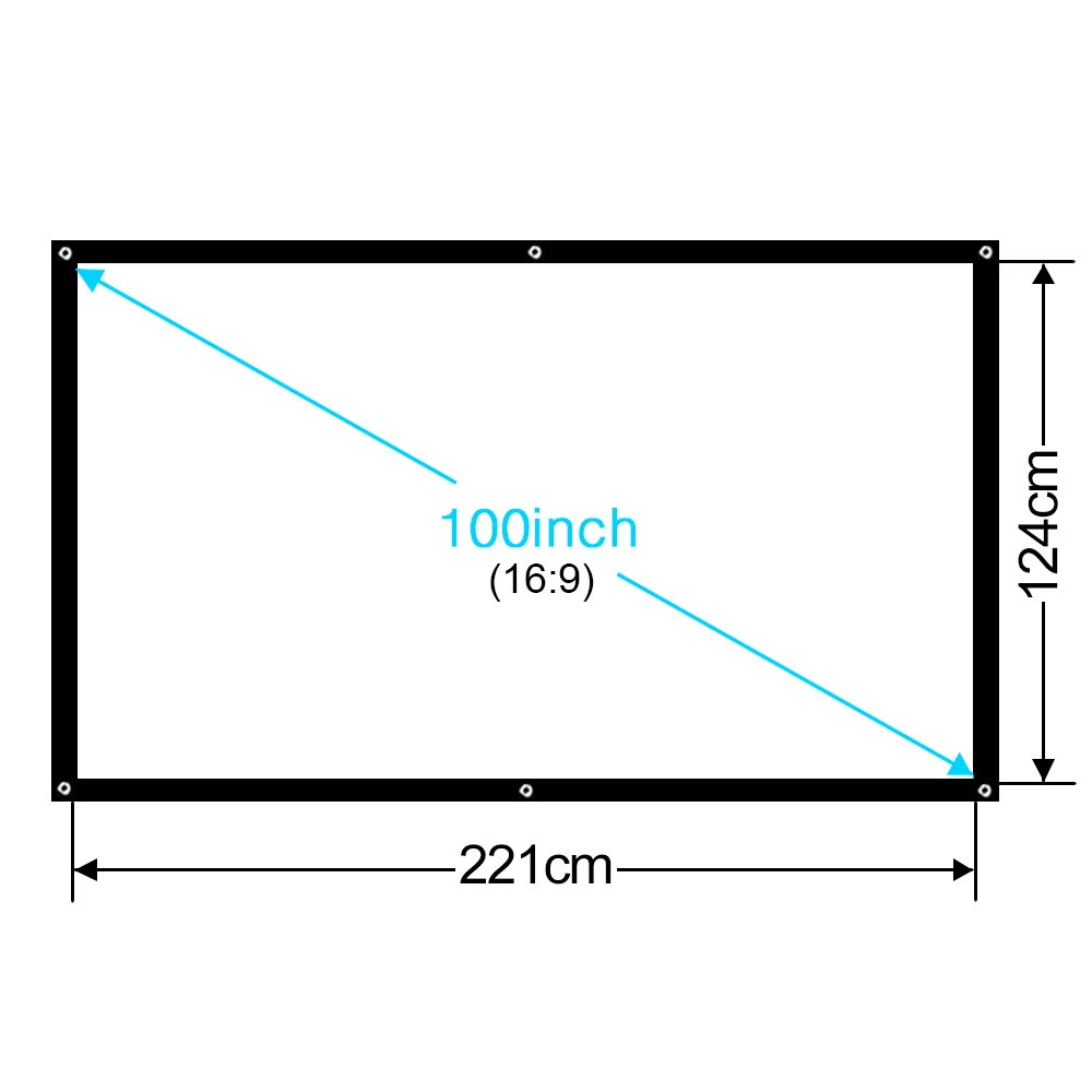 Размер экрана: 100 дюймов 16:9 Размер дисплея: 2,21 м x 1,24 м