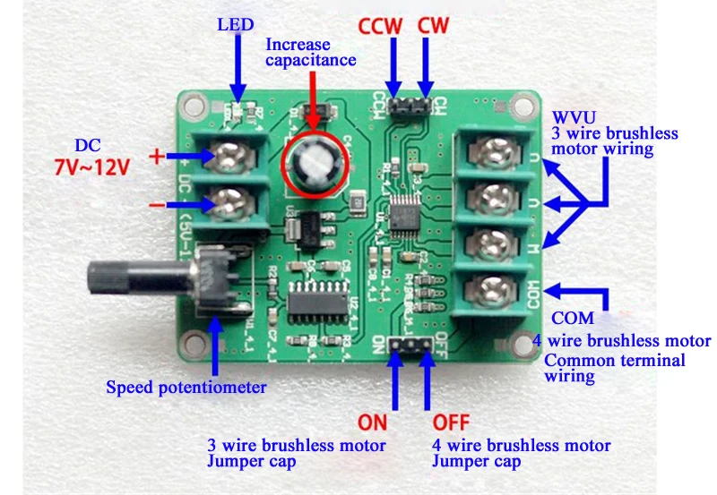 Плата привода имеет защиту от обратного подключения напряжения, защиту от перегрузки по току, простую проводку, простую в использовании.