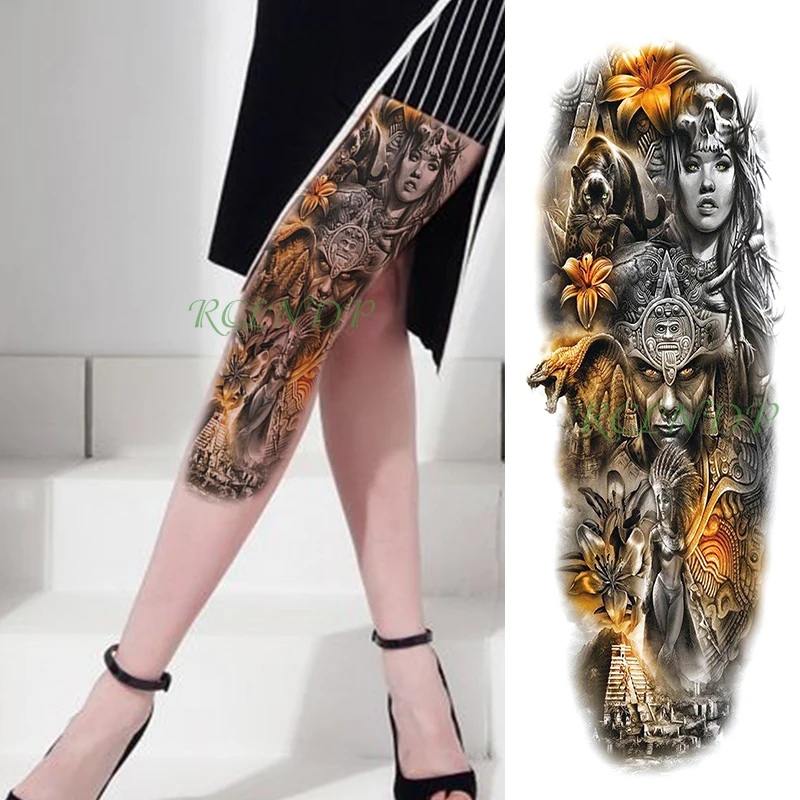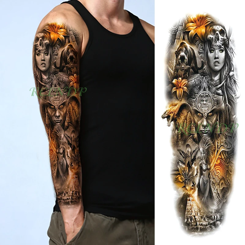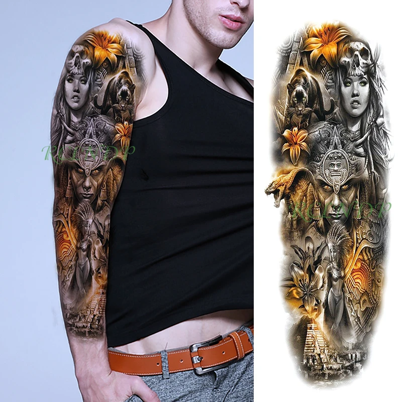 Водостойкая Временная тату-наклейка, Череп, девушка, старик, индийский человек, цветок, Золотая башня, руки, искусственная тату флэш-тату для мужчин и женщин