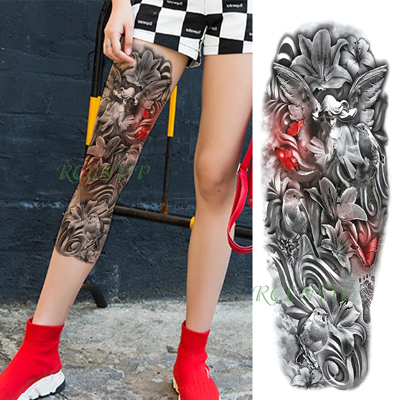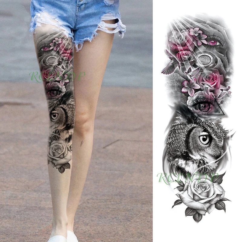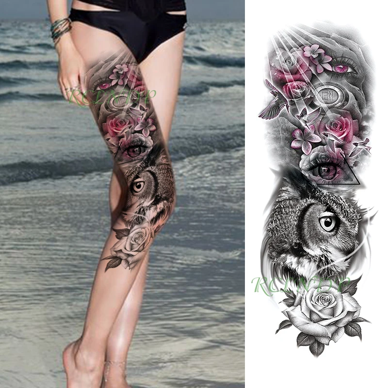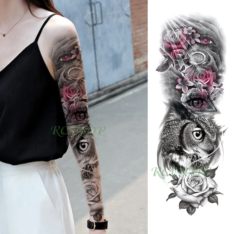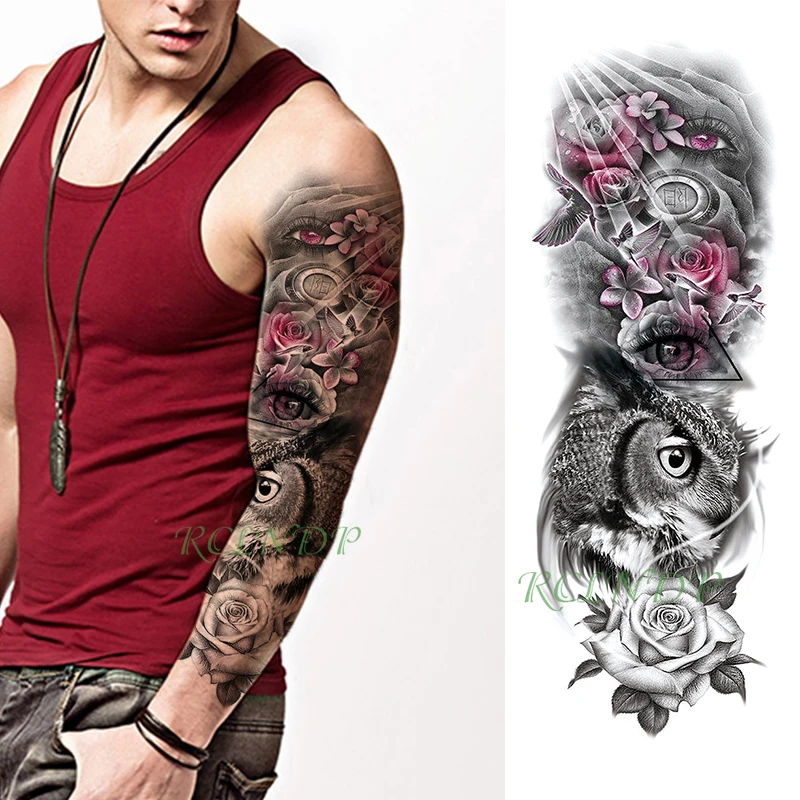 Водонепроницаемая Временная тату-наклейка птица сова цветок глаза полная рука поддельные тату флэш-тату рукав Тато для мужчин женщин