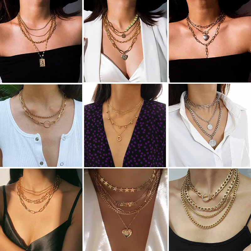 Женское многослойное колье-чокер в стиле хип-хоп, Винтажное колье р...