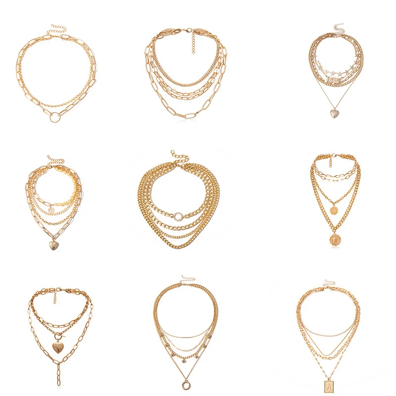 Чокер многослойный Женский, винтажное ожерелье золотого и серебряного цвета с надписью сердце, воротник-геометрические формы, кулон, ожерелье, ювелирное украшение для женщин