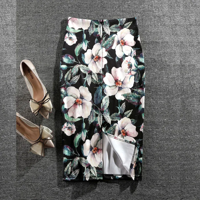 12 цветов женские юбки с цветочным принтом размера плюс корейские эластичные повседневные юбки-карандаш Faldas Mujer Moda