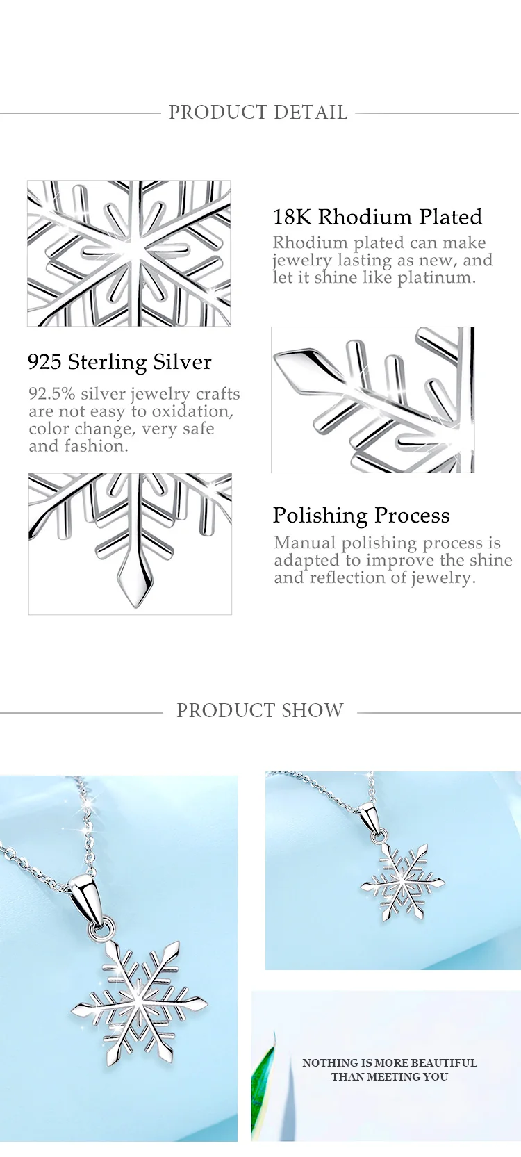 Ожерелье из стерлингового серебра, вдохновленное первым кусочком снежинки, падающей в мирную ночь, чистое и драгоценное, красивое и чистое. Было указано, что до тех пор, пока вы будете смотреть первый снег со своим любимым человеком, вы никогда не разлучитесь. Или когда вы увидите человека на первом снегу, он будет вашим правым